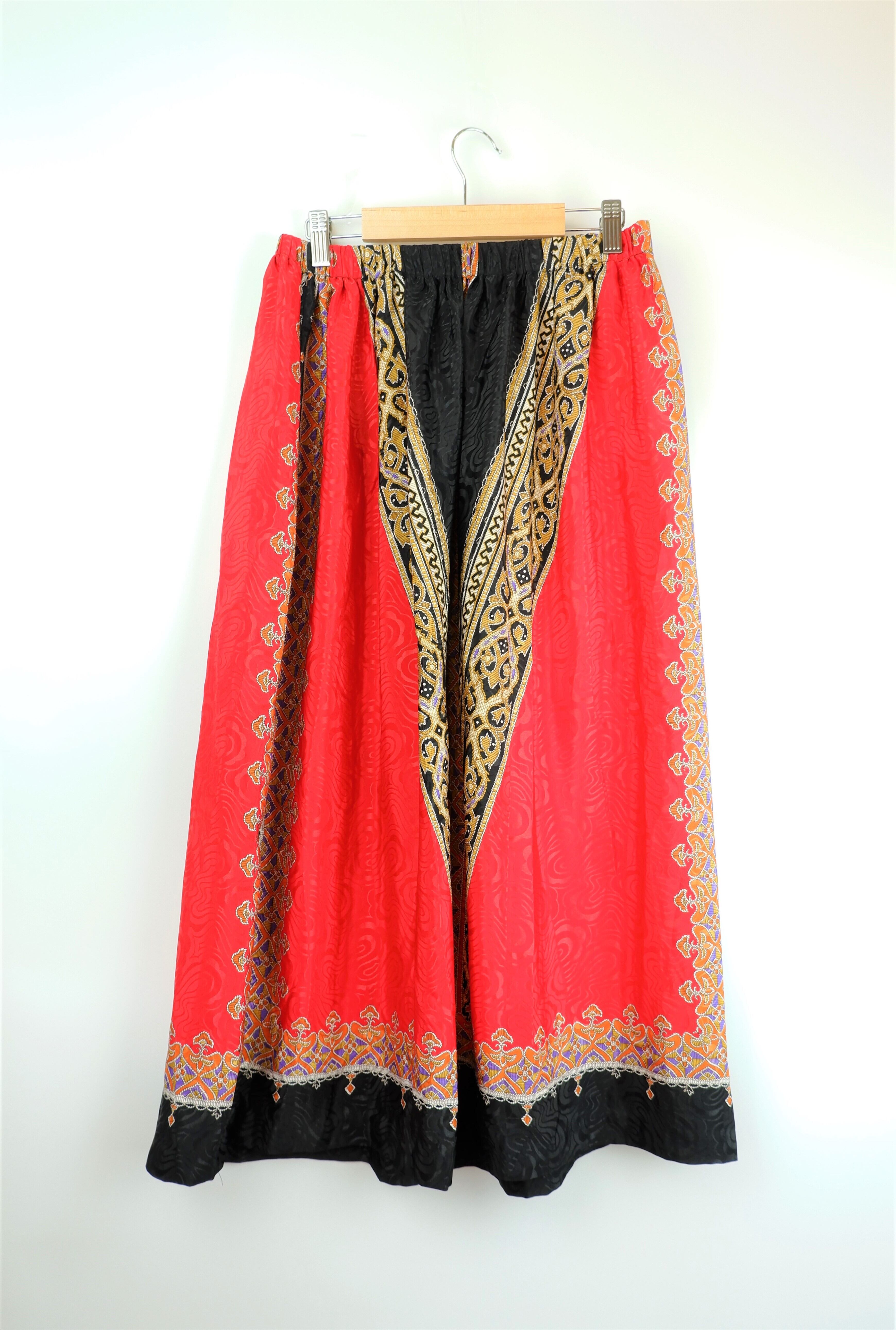 コメント:スカーフのような軽い生地感のフレアスカートです。やや透け感があり裏地は付いていないため、ボトムやペチコートを合わせて着用することをおすすめします。