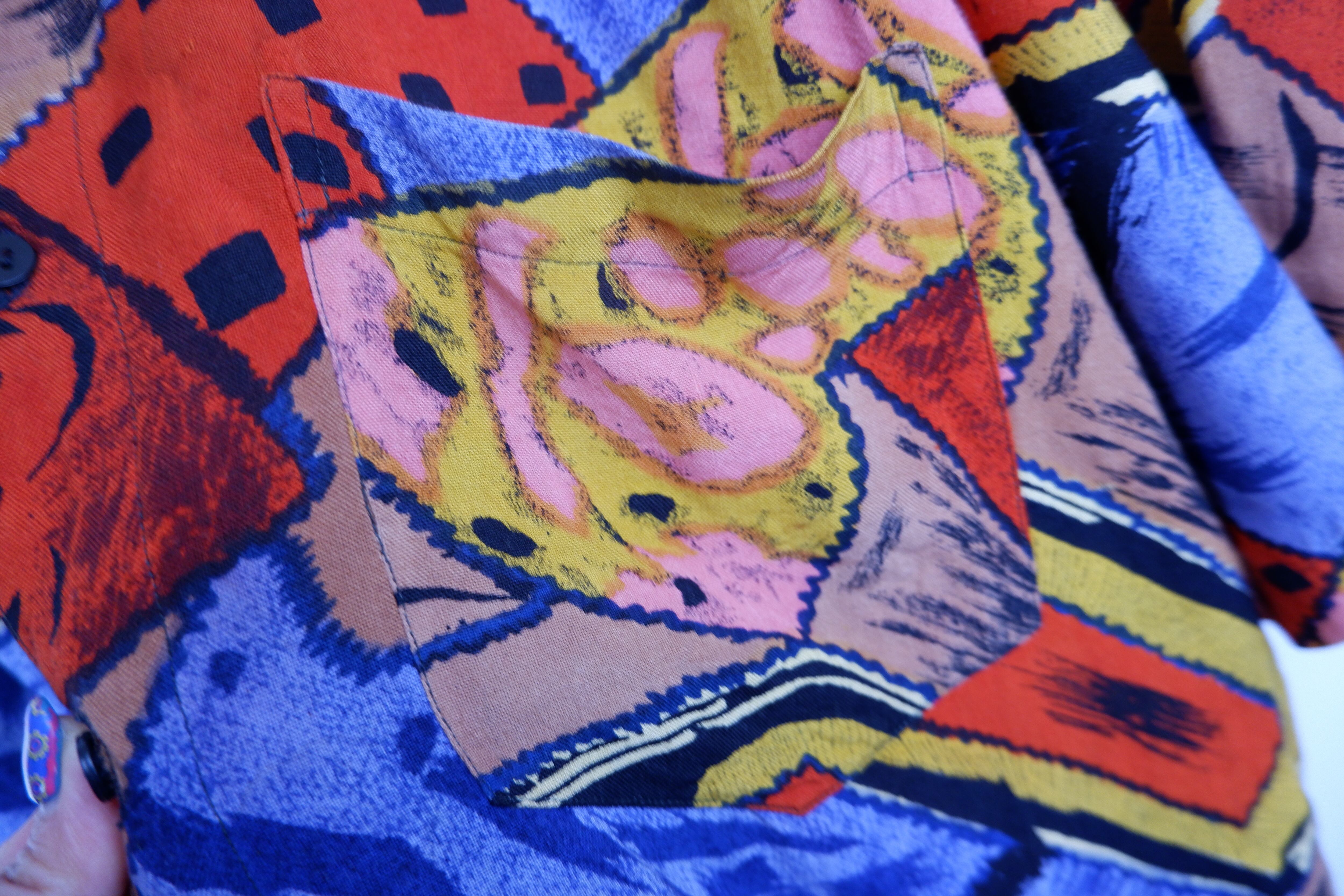 左前身頃の下から2つ目のボタンの横辺りにリペアの跡あり。画像にてご確認ください。