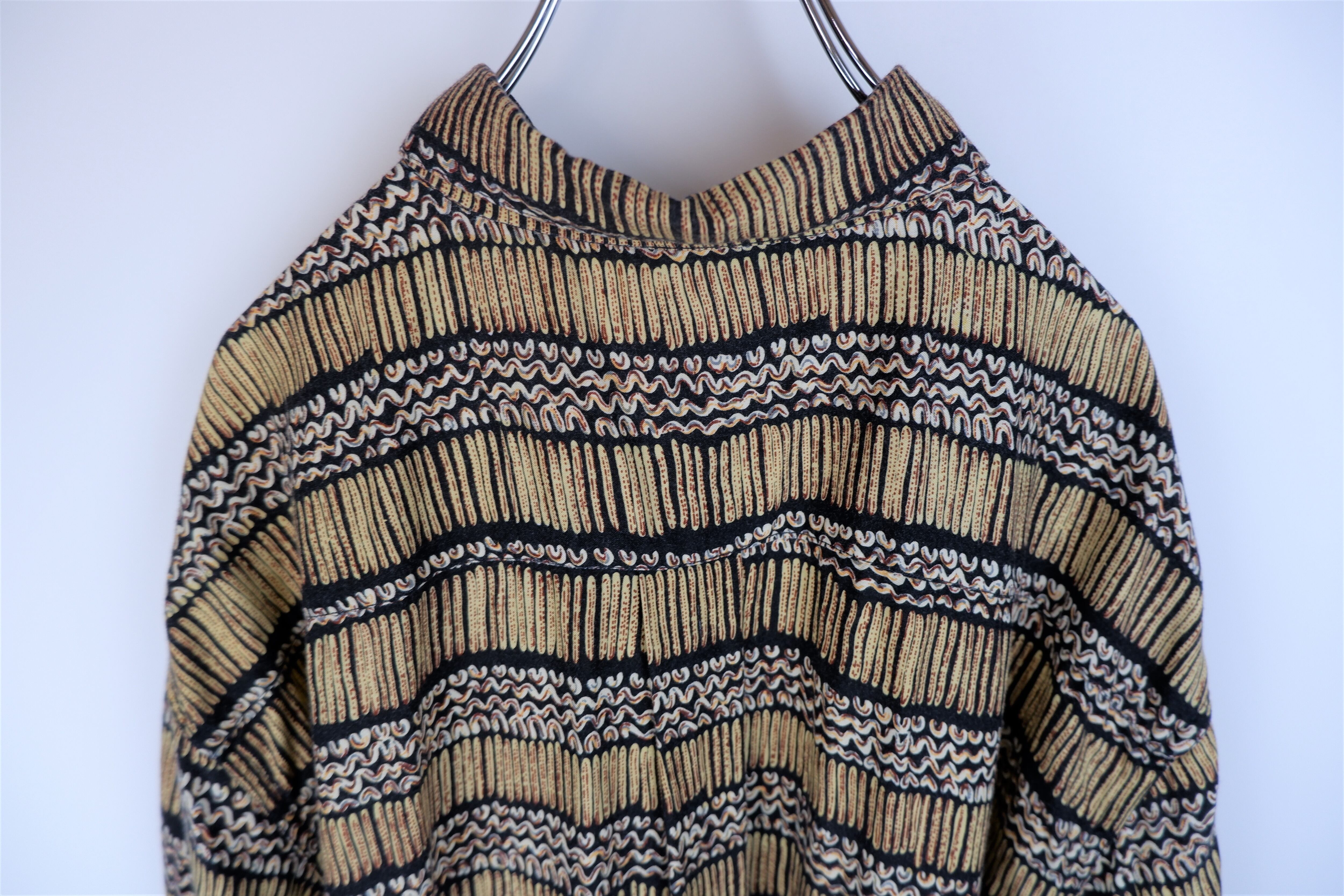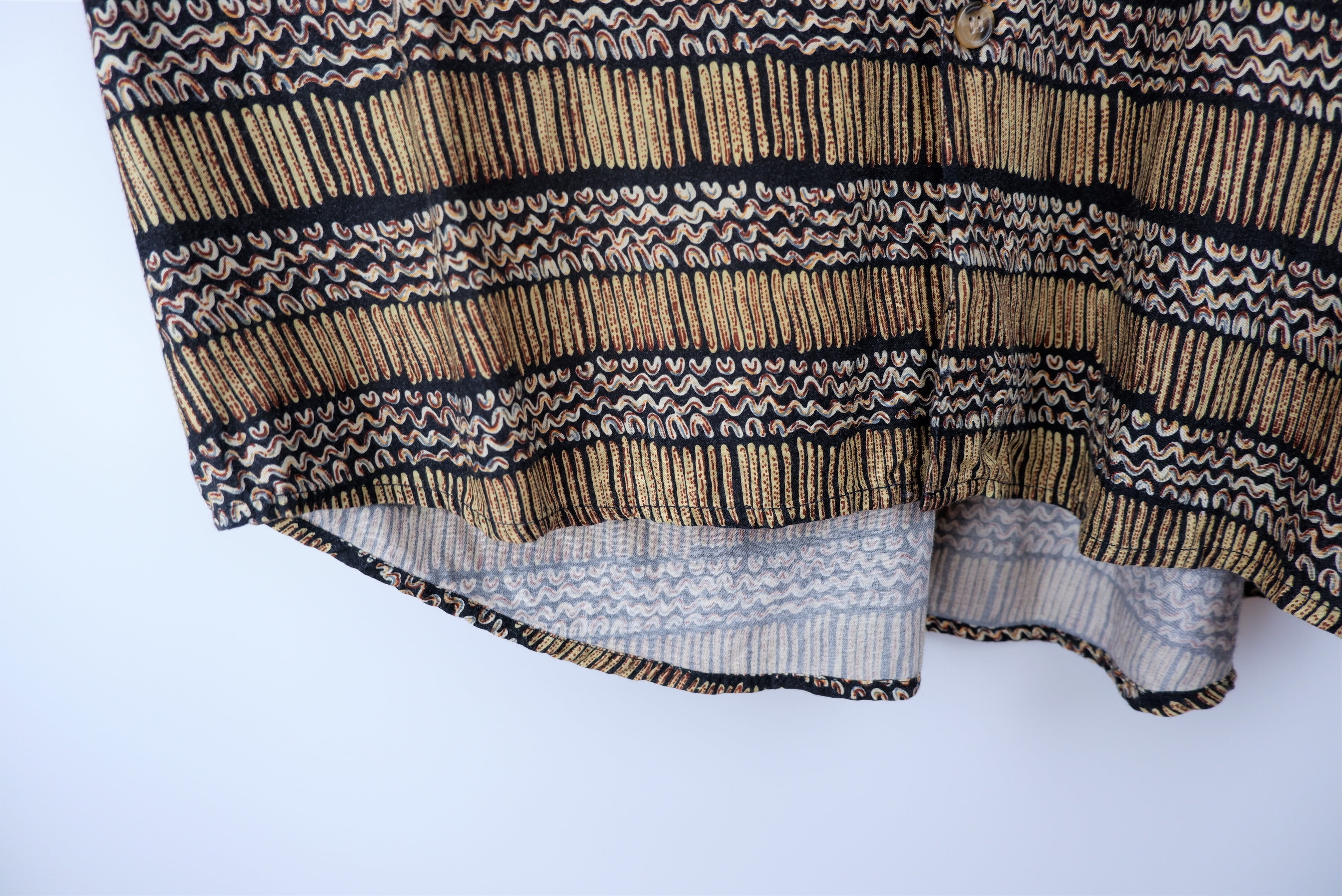 コメント:レーヨン100%で柔らかい素材感の総柄シャツです。