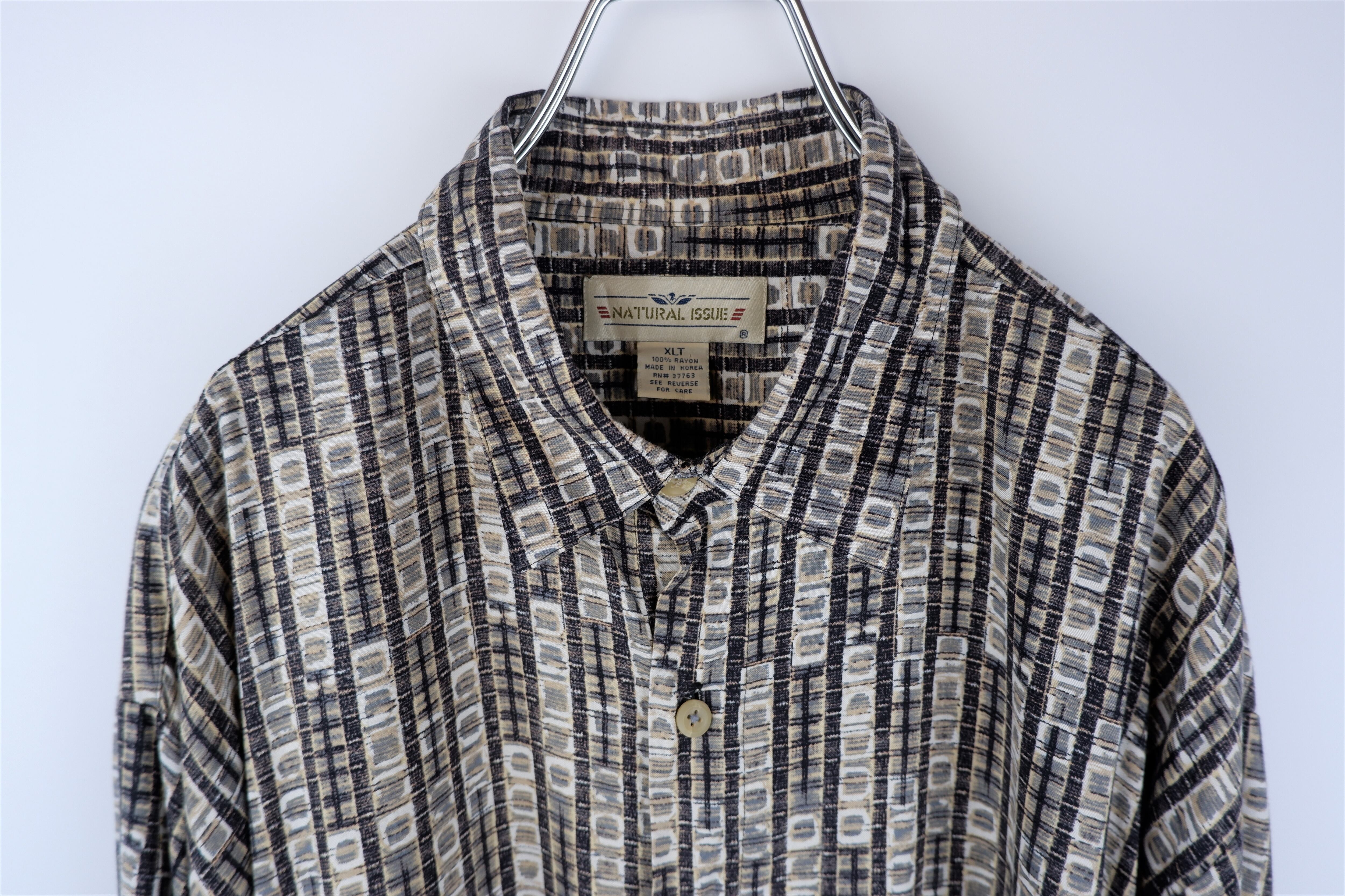 コメント:レーヨン素材のビッグシルエット総柄シャツです。