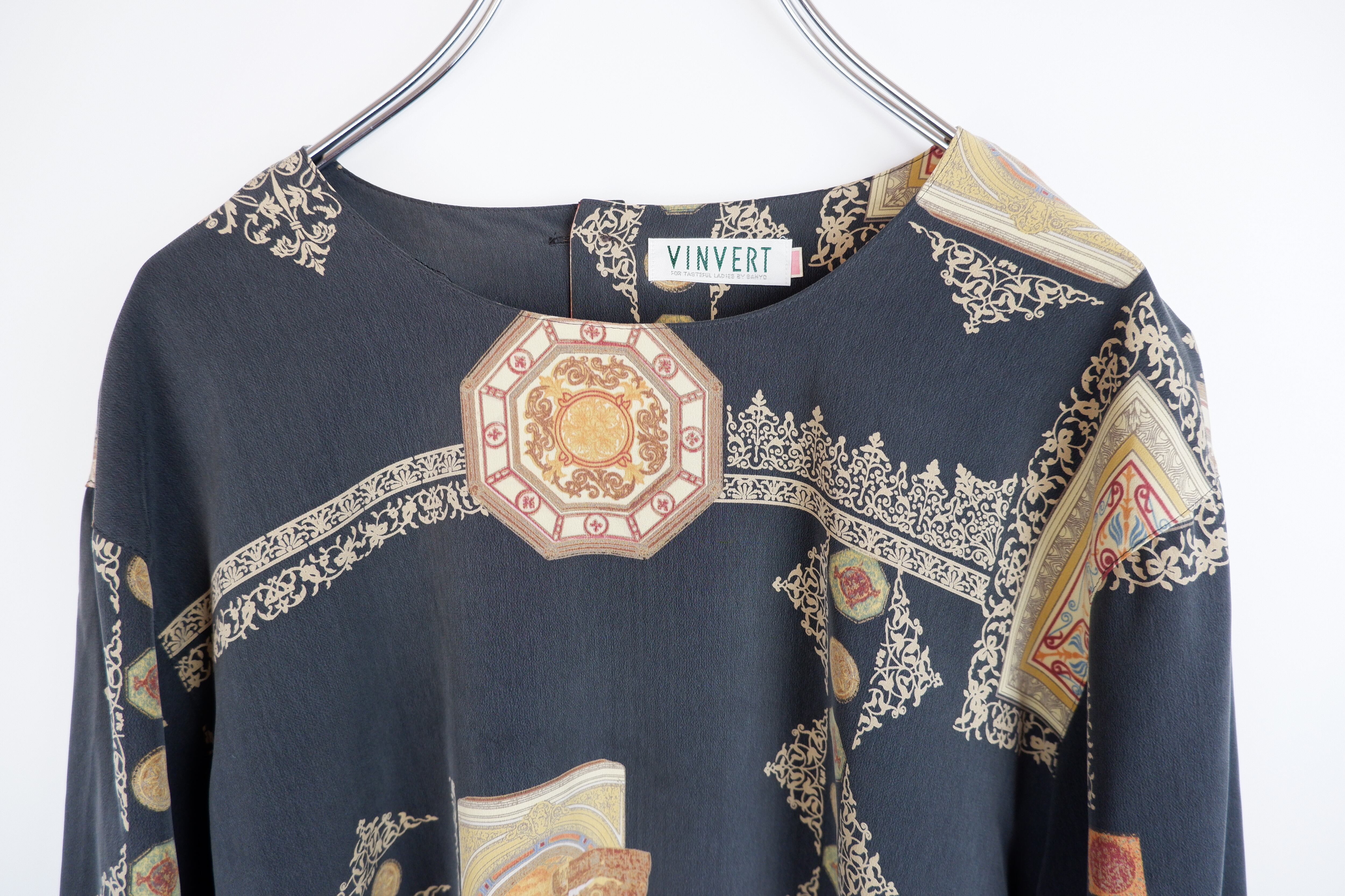 コメント:シルクのような滑らかな素材感のプルオーバーブラウスです。