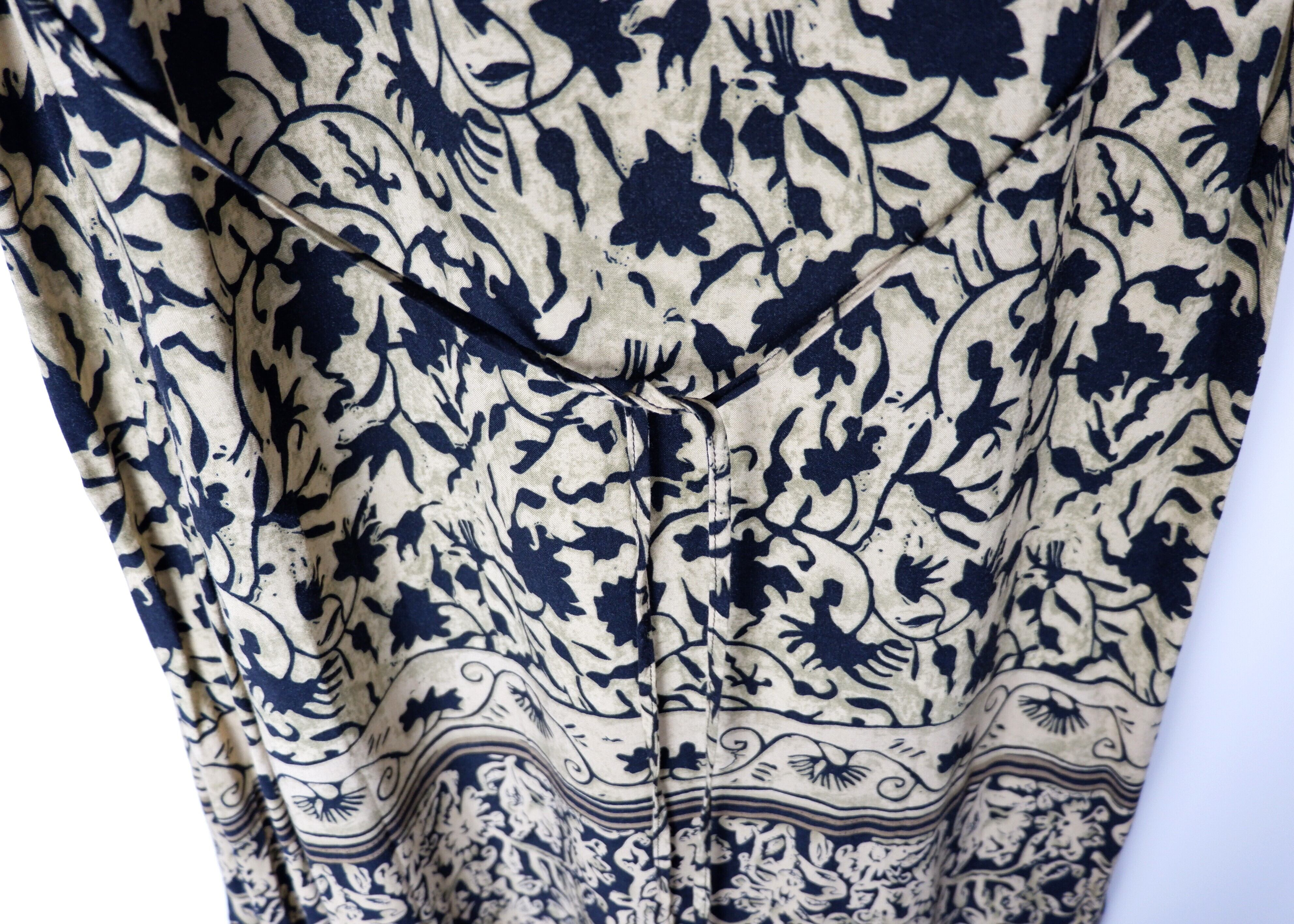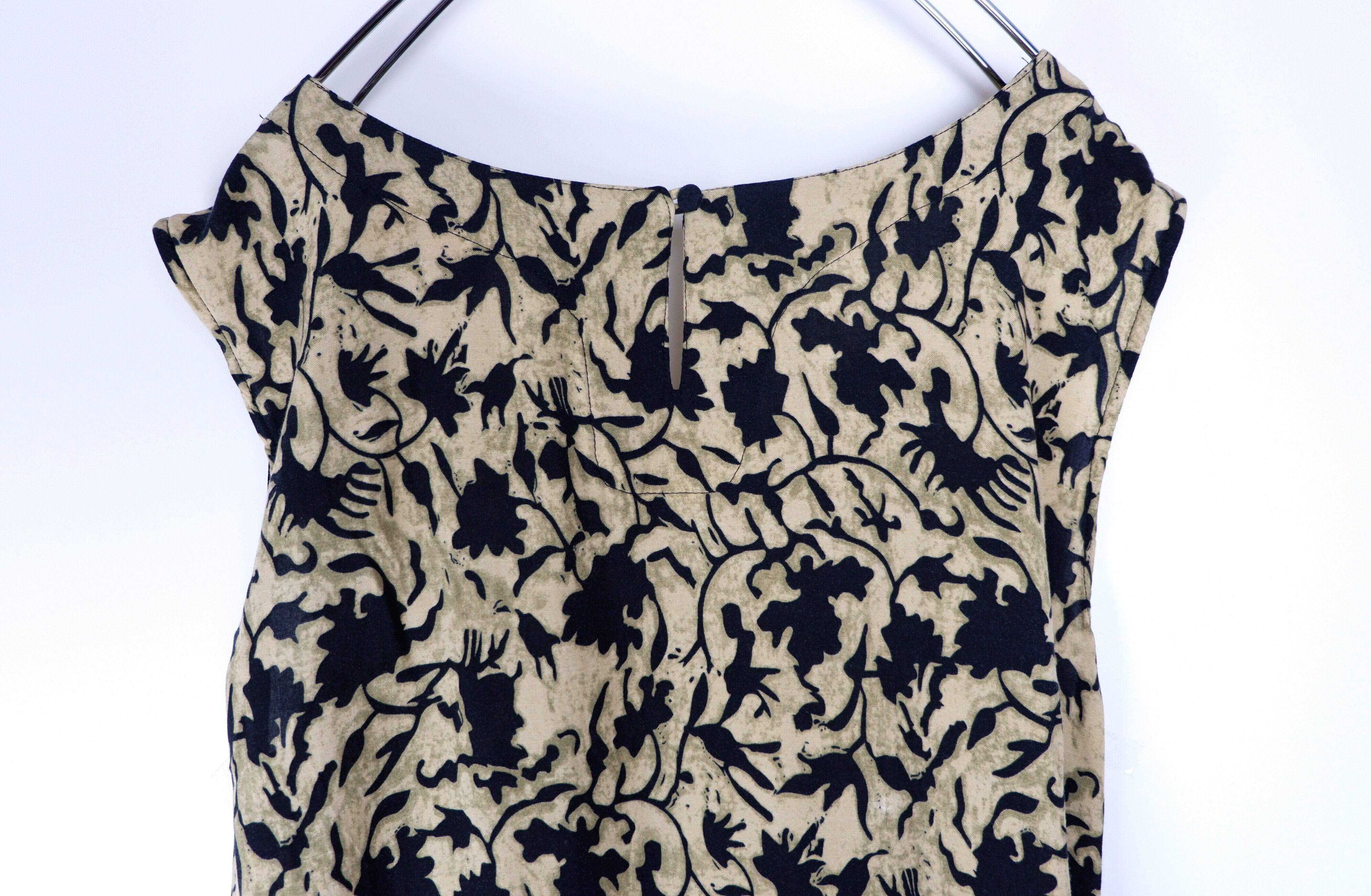 コメント:裾のプリント柄が特徴的なマキシ丈のノースリーブワンピース。アメリカ古着です。