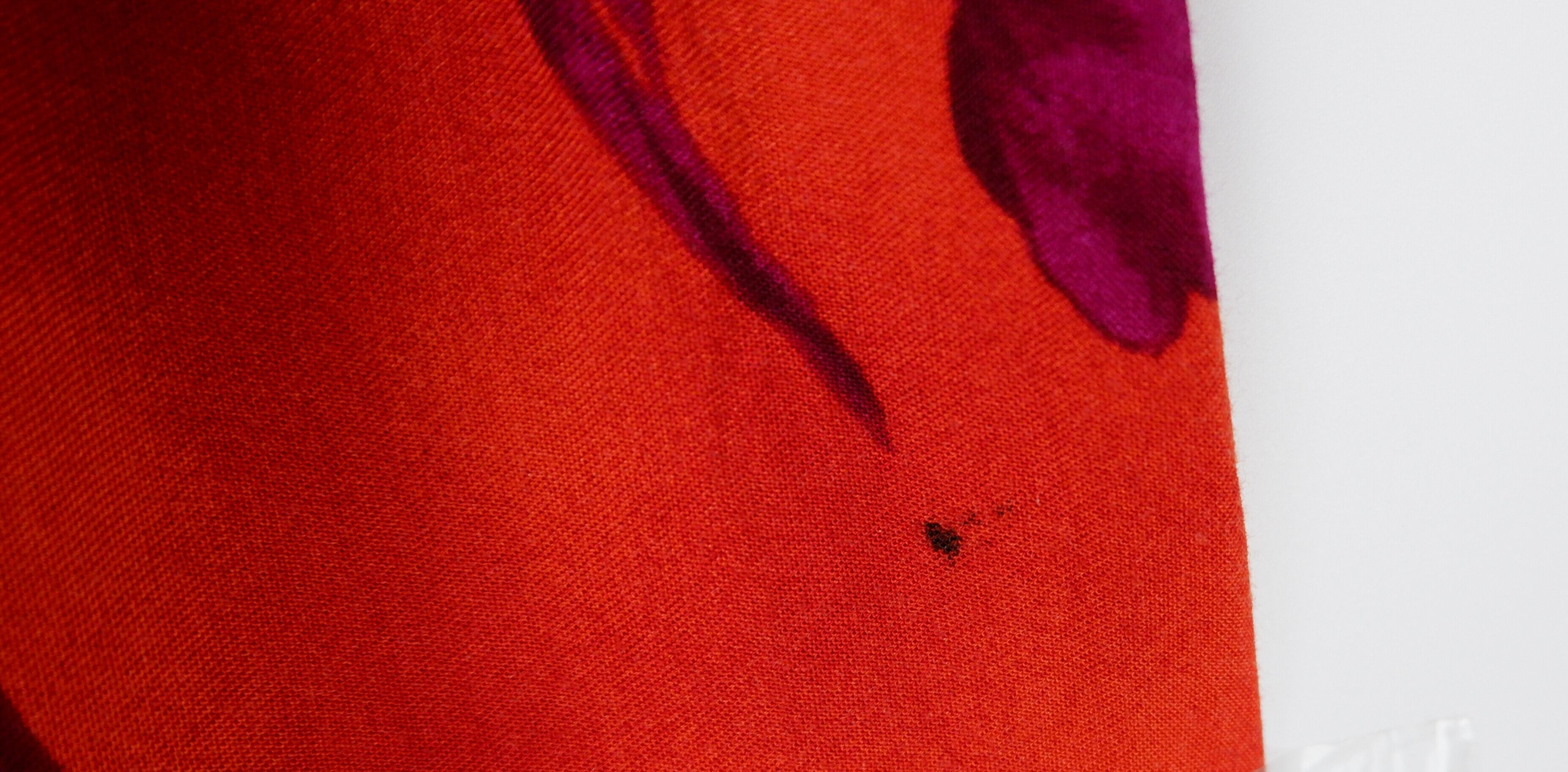 プリーツ加工の下部に数か所引きつれの傷があります。