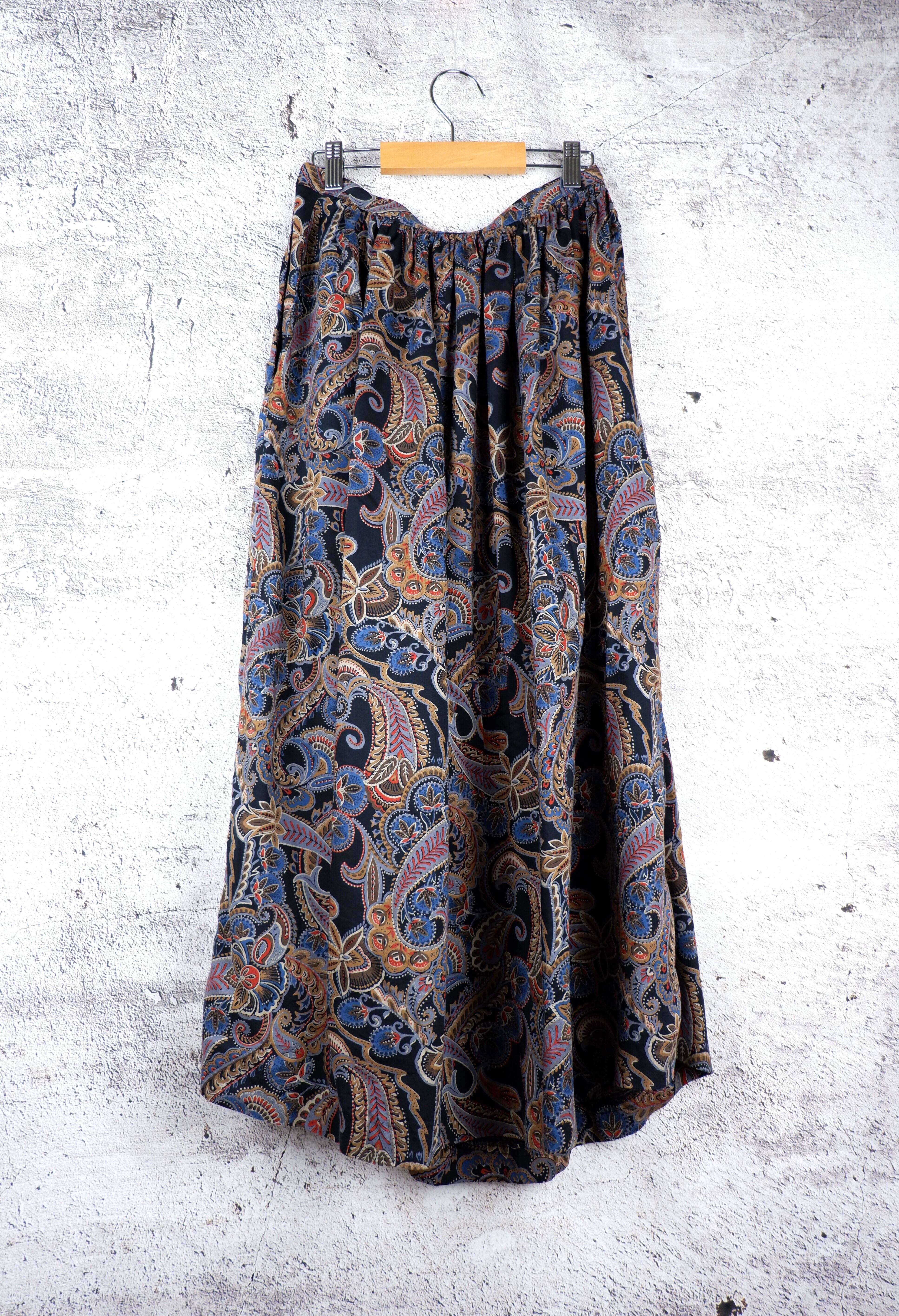 コメント:シックな色合いのボタニカル柄マキシ丈スカート。