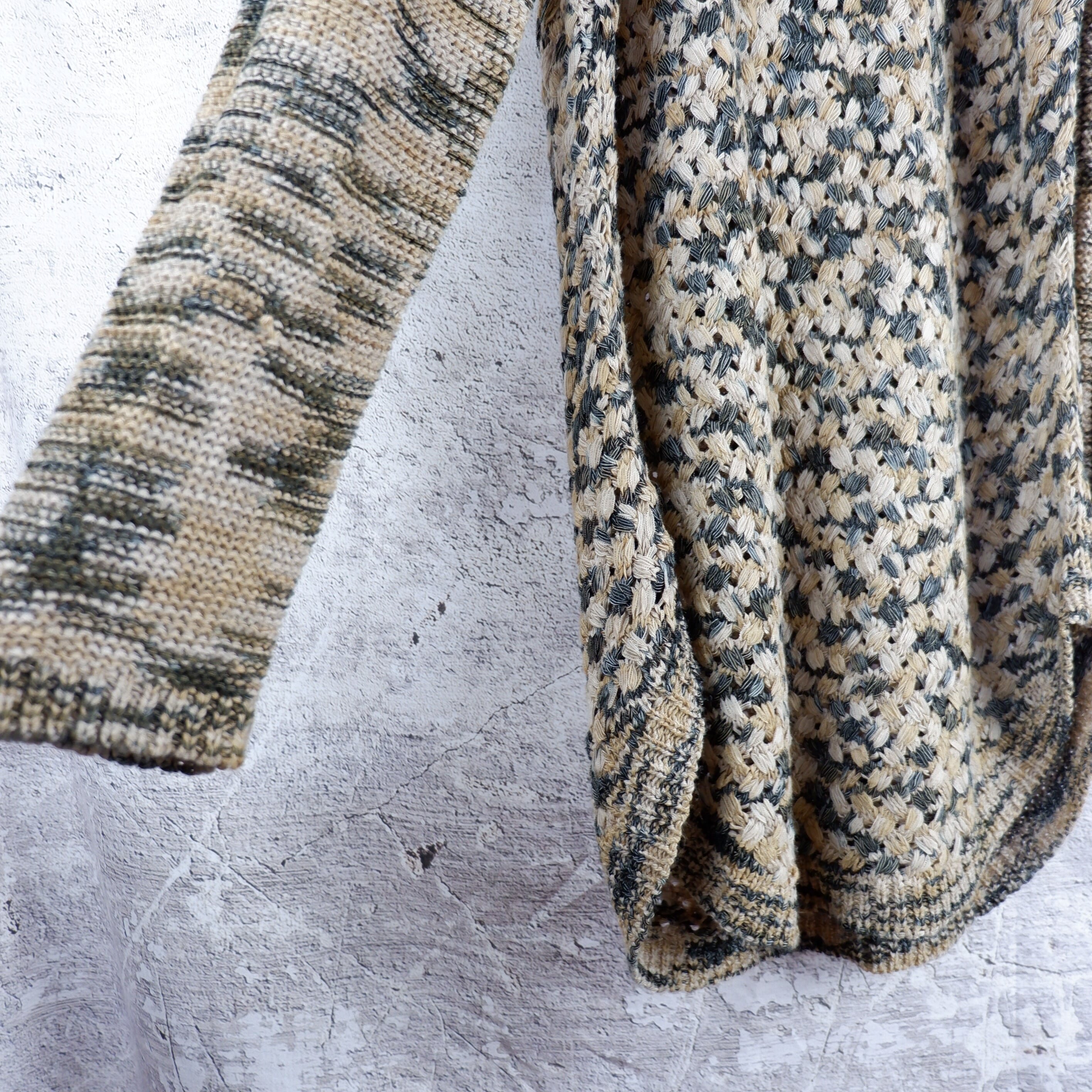 コメント:身頃と袖で編み方の異なるミックスカラーのローゲージニットチュニック。